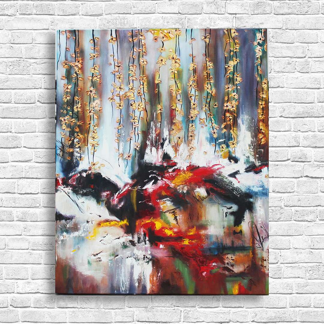 Medium- Mixed media with oils and gold leaf on gallery wrapped canvas